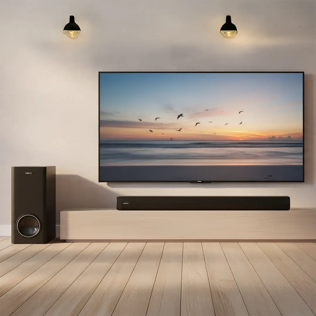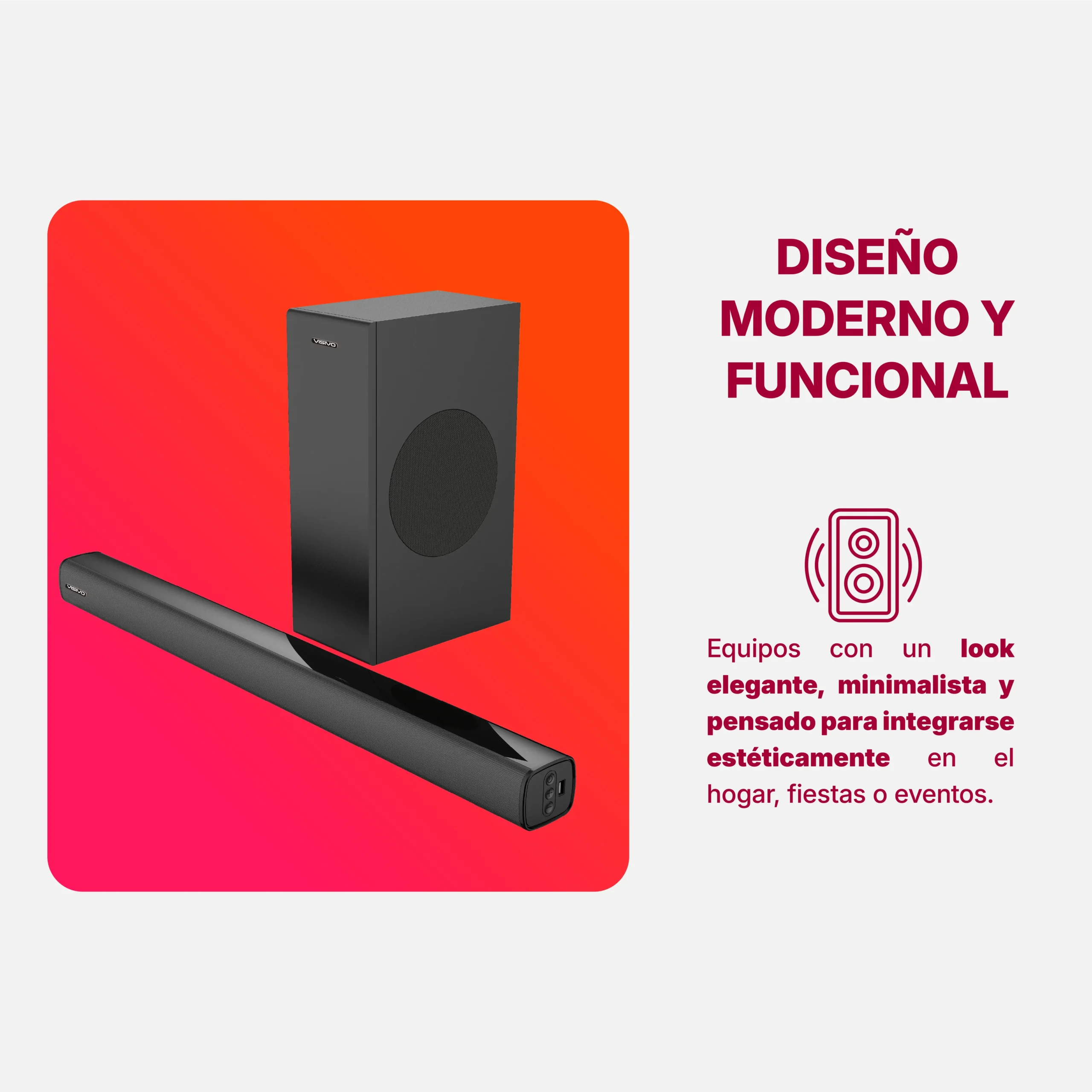 Subwoofer activoSonido envolventeDiseño moderno y minimalistaControles físicos y remoto
